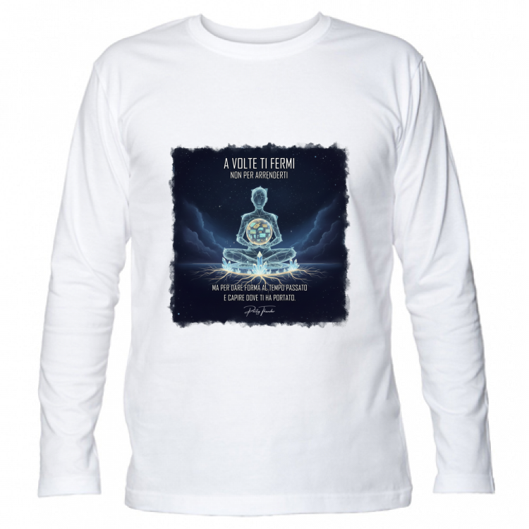 Soft long-sleeve t-shirt with a simple cut, in soft Ringspun semi-combed cotton. Tubular fabric with reinforcing tape on the neck, cuffless sleeves with a delicate rib. Washable at 40 degrees.