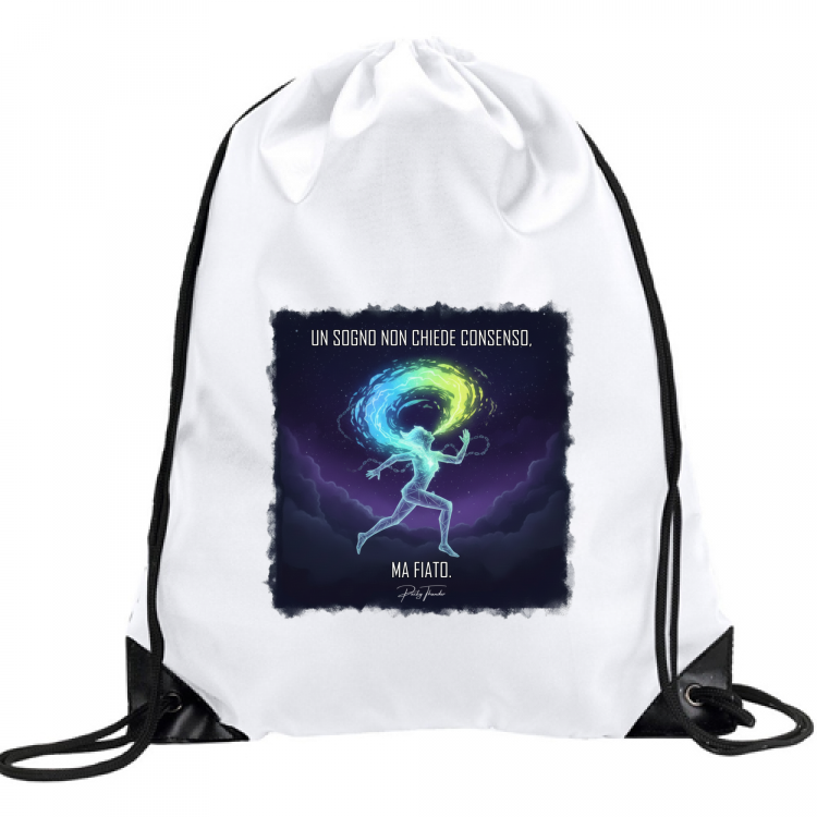 Polyester sports backpack measuring about 35x45 cm with black shoulder strap.