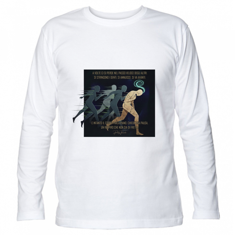 Soft long-sleeve t-shirt with a simple cut, in soft Ringspun semi-combed cotton. Tubular fabric with reinforcing tape on the neck, cuffless sleeves with a delicate rib. Washable at 40 degrees.