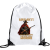 Polyester sports backpack measuring about 35x45 cm with black shoulder strap.